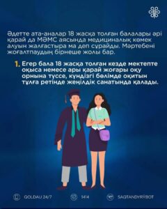 Басқа жағдайларда сақтандырылған мәртебесін сақтау және МӘМС аясында медициналық көмек алу құқығына ие болу үшін, 18-ге толған азамат дербес төлеуші ретінде жарналарды өзі төлеуі қажет (2026 жылы – айына 4 250 теңге).