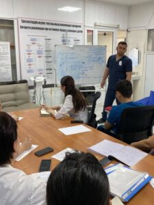 Шу қалалық емханасы базасында «Синий код» командасы үшін кеңейтілген жүрек-өкпе реанимациясын (ACLS) жүргізуге арналған семинарлық оқыту ұйымдастырылды. Аталған оқыту медицина қызметкерлерінің шұғыл жағдайларда әрекет ету дағдыларын жетілдіруге бағытталған.